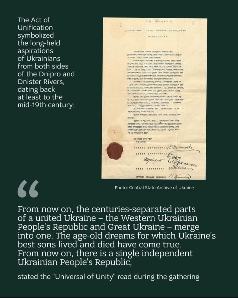 The Day of Unification of Ukraine symbolizes national unity and the desire for freedom, and the significance of the Unification Act remains relevant today, 106 years later. Ukrainians want to live in a united, united and independent state.