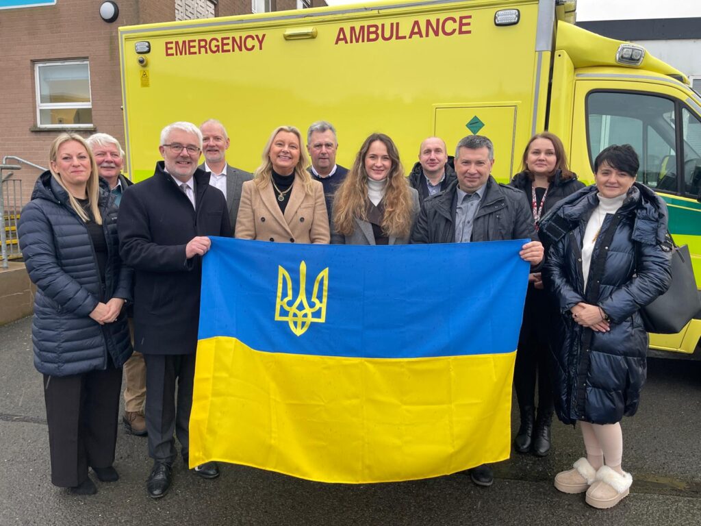 The Chairman and representatives of the Ukrainians in Northern Ireland Charity were delighted to take receipt of a redundant ambulance from the Northern Ireland Ambulance Service (NIAS) which will shortly be exported to Ukraine to facilitate the medical retrieval and evacuation of severely wounded casualties from the front line in Eastern Ukraine.
